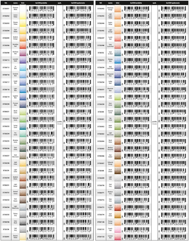 There are some old charts (prior to 2017) with the 72 Mondeluz Aquarelle colors, but there is not an exact match for some numbers. That happens because Koh-I-Noor replaced some colors, as can be seen below (old color numbers on the right, new color numbers on the left):